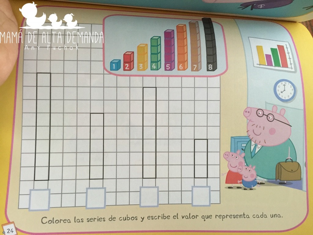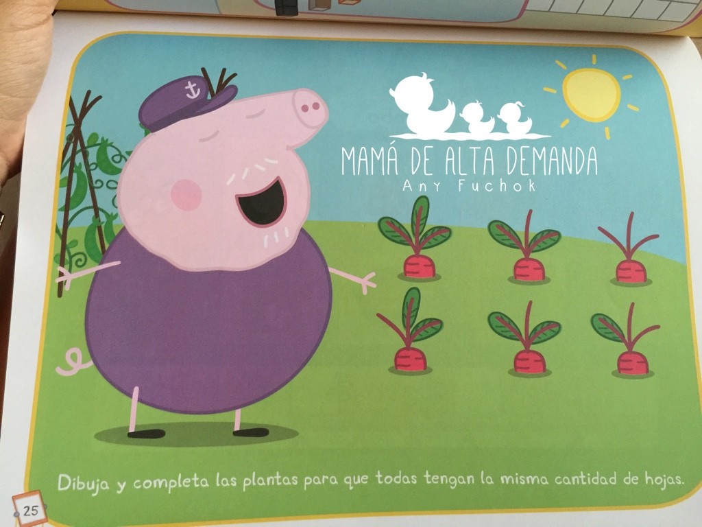 Mi hija es una pequeña fan de la serie y nos reímos mucho, el otro día que paseábamos en la plaza comercial encontramos este libro que le viene genial por su edad, el título es «Mis números con Peppa Pig», el cual incluye trazos, letras, palabras y números que justamente le están enseñando en su grado escolar (kinder 3) ¡y los hace con un gusto enorme en casa! La editorial es Altea y lo venden en todas la librerías y tiendas departamentales como esta.